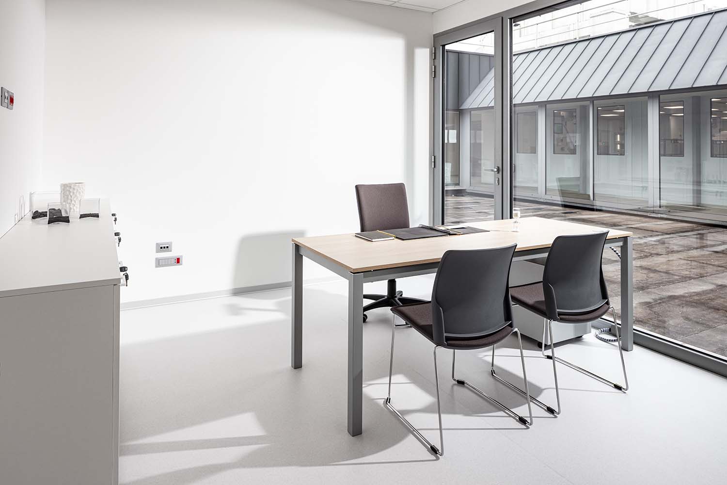 Tudi zasebni pisarniški prostori so opremljeni z mizami X4 skupaj s predalniki in omarami, ter stoli Optima in Close, ki se uporabljajo tudi v drugih delih pisarne.