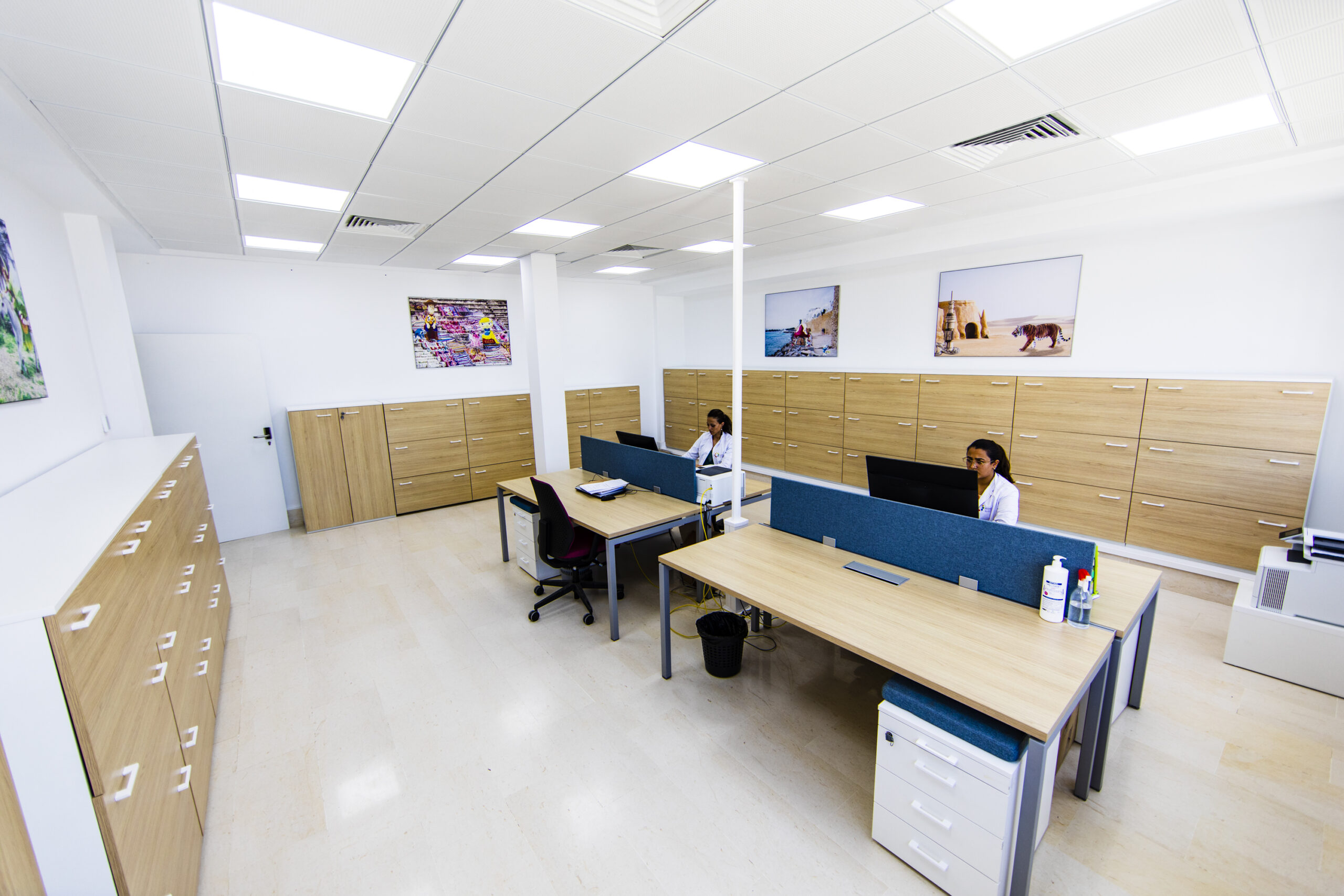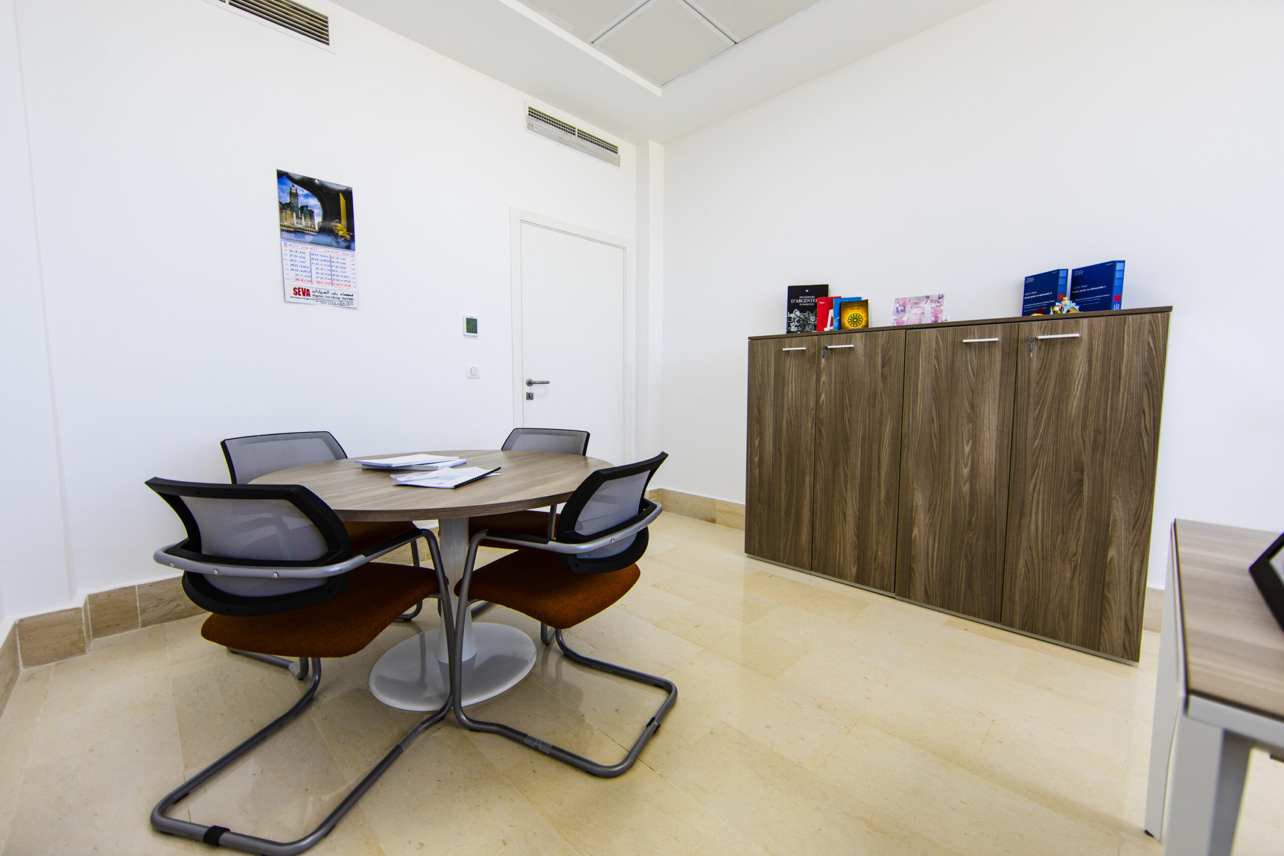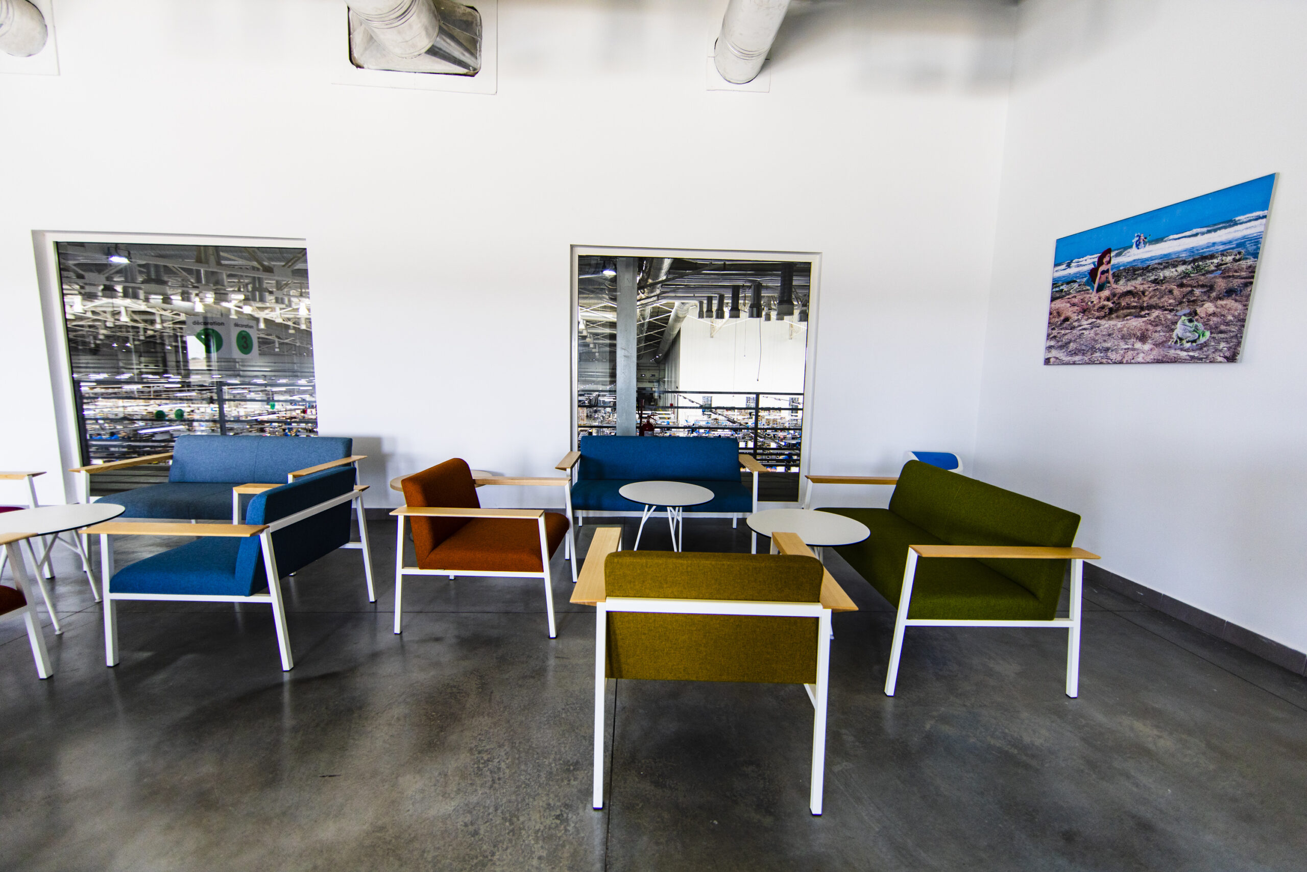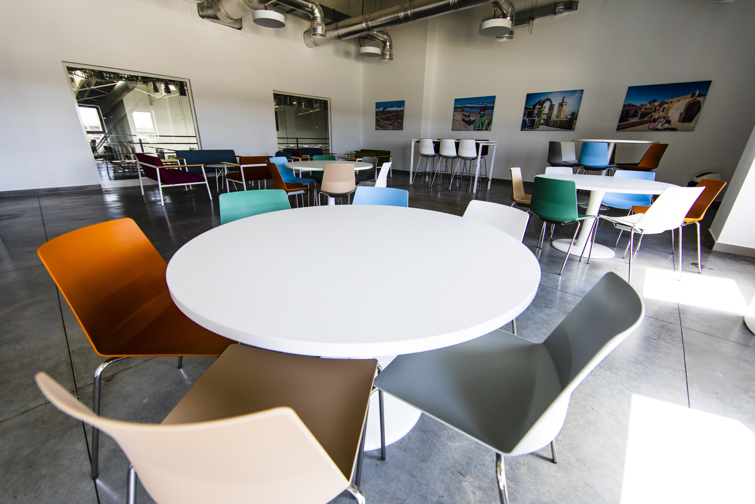 Namesto operativnih pisarn so bile v notranjosti postavljene mize Idea+ 01, ki se zaradi številnih variant v katalogu lepo prilegajo prostoru, v kombinaciji s stoli Ologram. Ti so opremljeni s sinhronim mehanizmom in nastavljivimi nasloni za roke, kar zagotavlja občutek dobrega počutja skozi cel delovni dan.