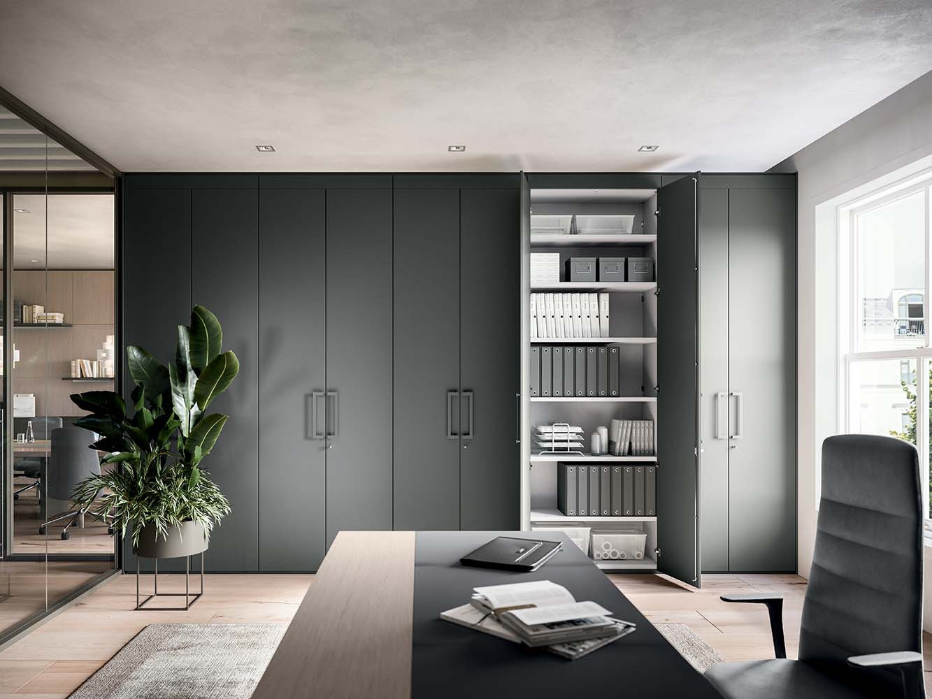 S1 je večnamenski pohištveni sistem, ki združuje različne pregradne stene v neprozorni ali stekleni izvedbi. Zasnovan je tako, da je organiziran, dostopen in prijeten za uporabo, kar ga postavlja bistveno dlje od običajne opremljene stene.