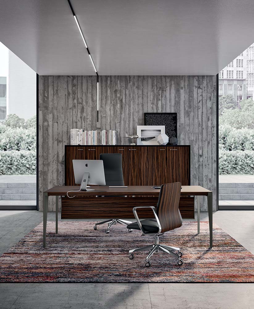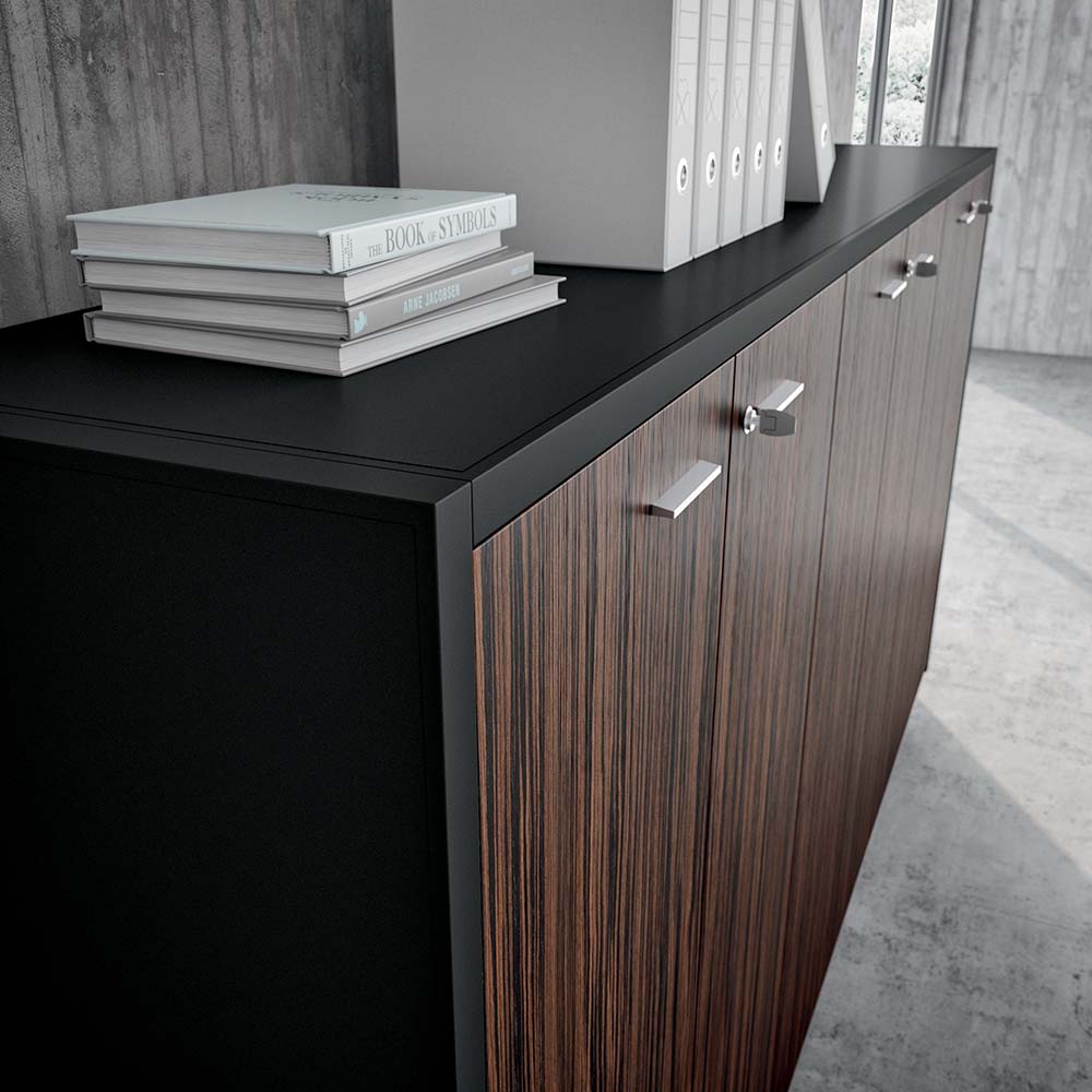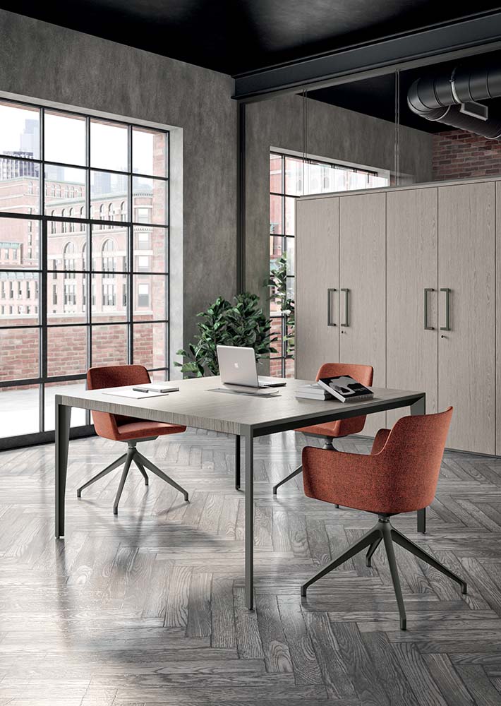 Njen fleksibilen dizajn omogoča sestavo elementov v več konfiguracijah: samostojno ali s pisalnim pultom, ter različne rešitve, odvisno od razpoložljivega prostora, vedno zagotavljajoč optimalno konfiguracijo.