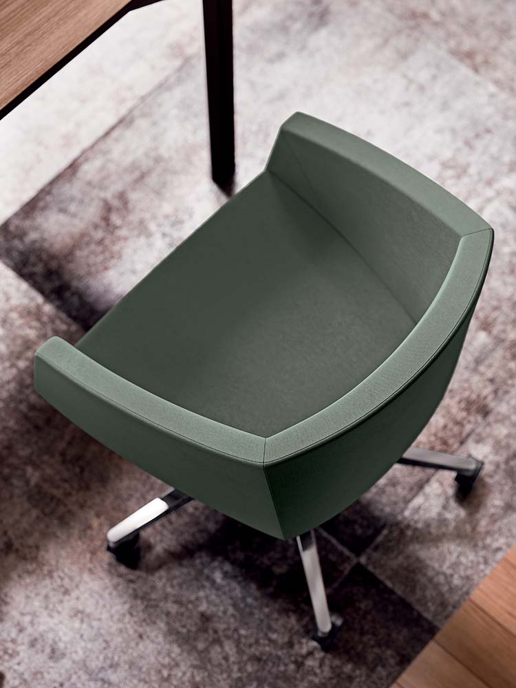 Glede na potrebe je Alias na voljo v izvedbi s školjkastim sedežem ali z osnovo na kolescih, kar omogoča enostavno premikanje iz enega prostora v drugega.
