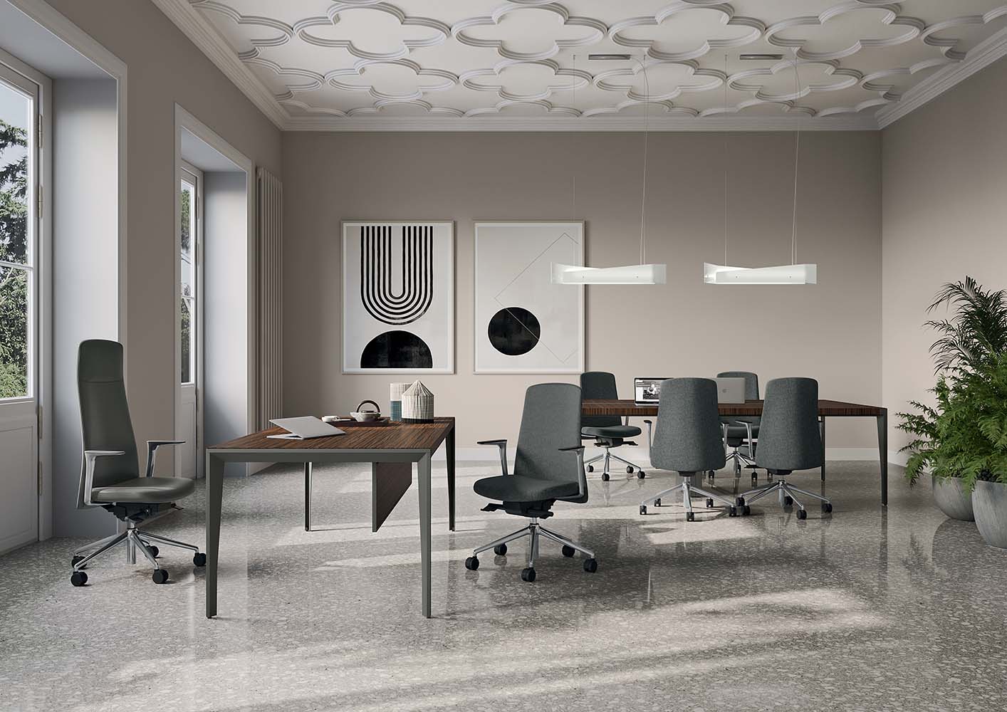 Diade je na voljo v visoki različici z naslonjalom za glavo ali brez ter v nizki različici, ki dodaja eleganco in osebnost sejnim sobam.