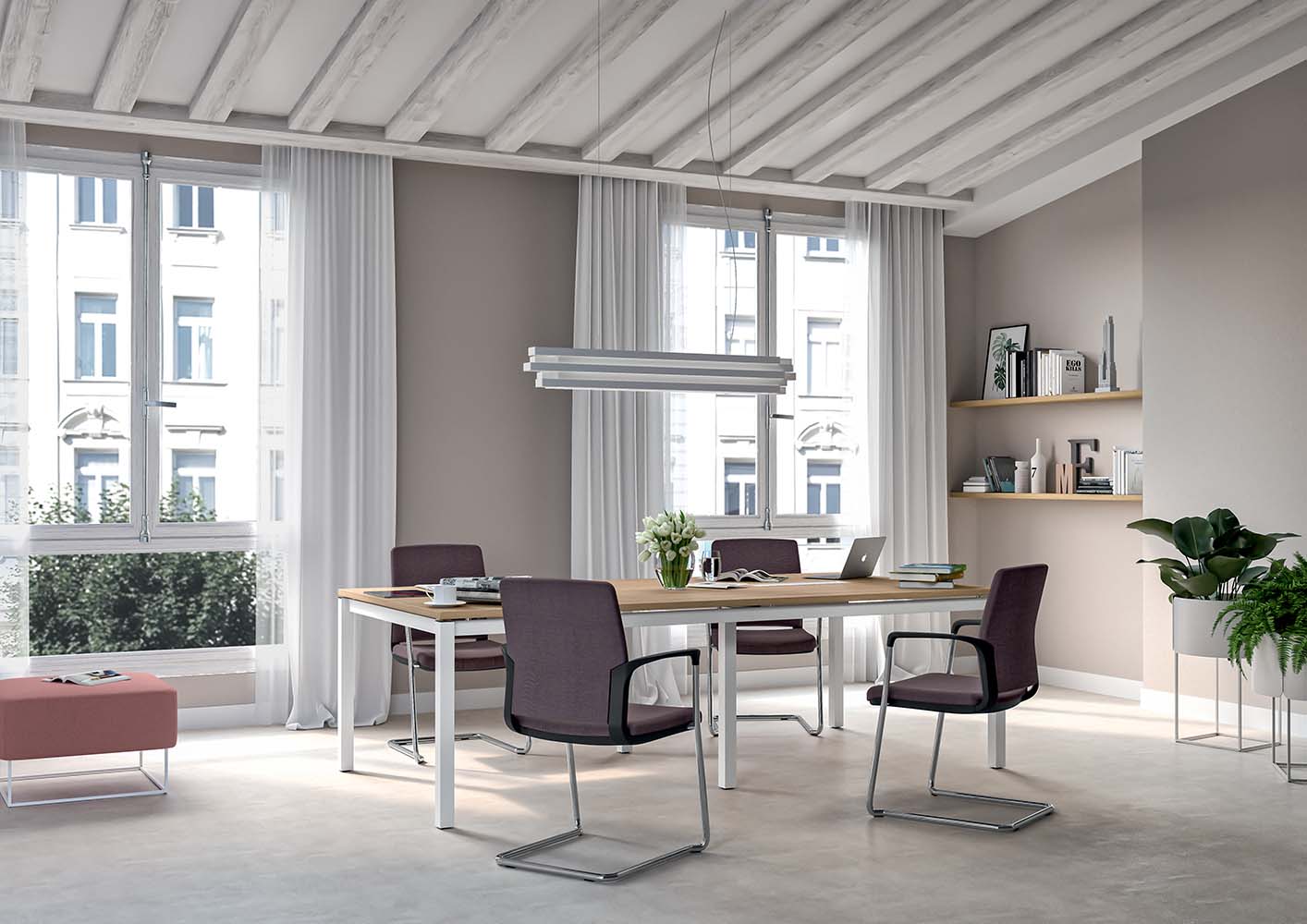 Zahvaljujoč modularni strukturi in širokemu izboru barvnih odtenkov, ki omogočajo ustvarjanje izvirnih dvobarvnih različic naslonov za roke in naslonjal, se Cloud zlahka prilagodi tako zasebnim kot javnim prostorom.