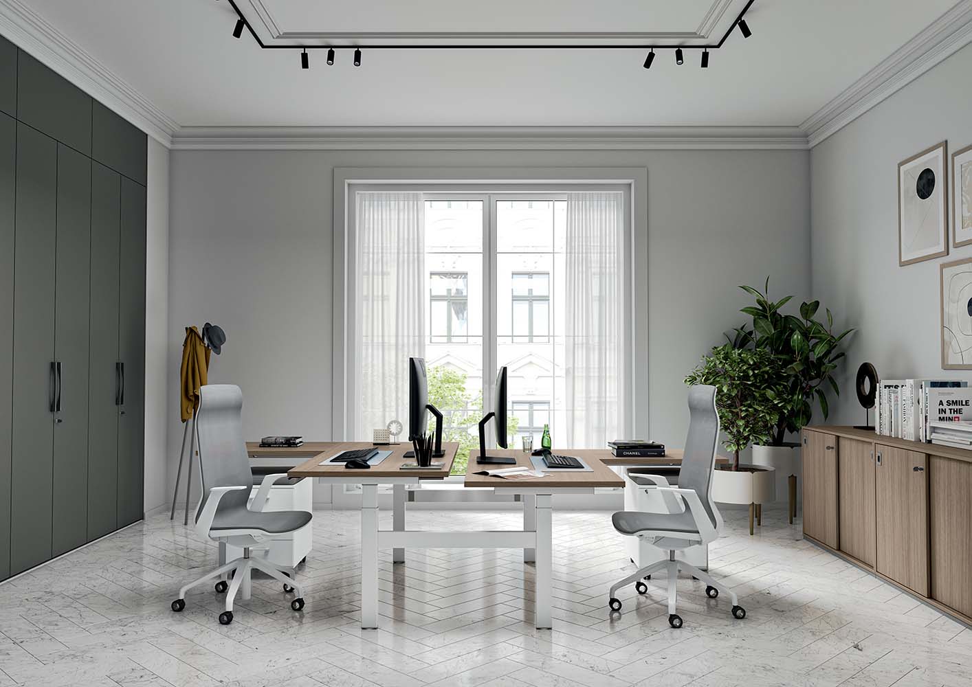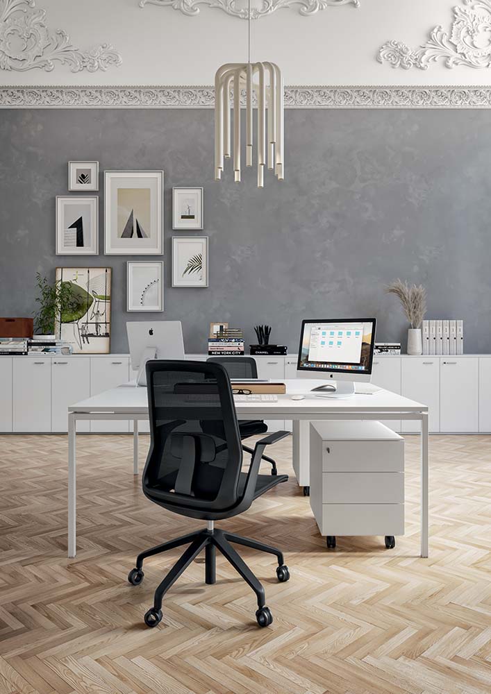 Ode je delovni stol z mednarodnim slogom, ki se ponaša z minimalističnimi linijami in izjemno funkcionalnostjo. Idealen je za ustvarjanje prijetnega in ergonomskega delovnega mesta.